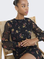 ONLEliza Neck Dress/ Black Flower